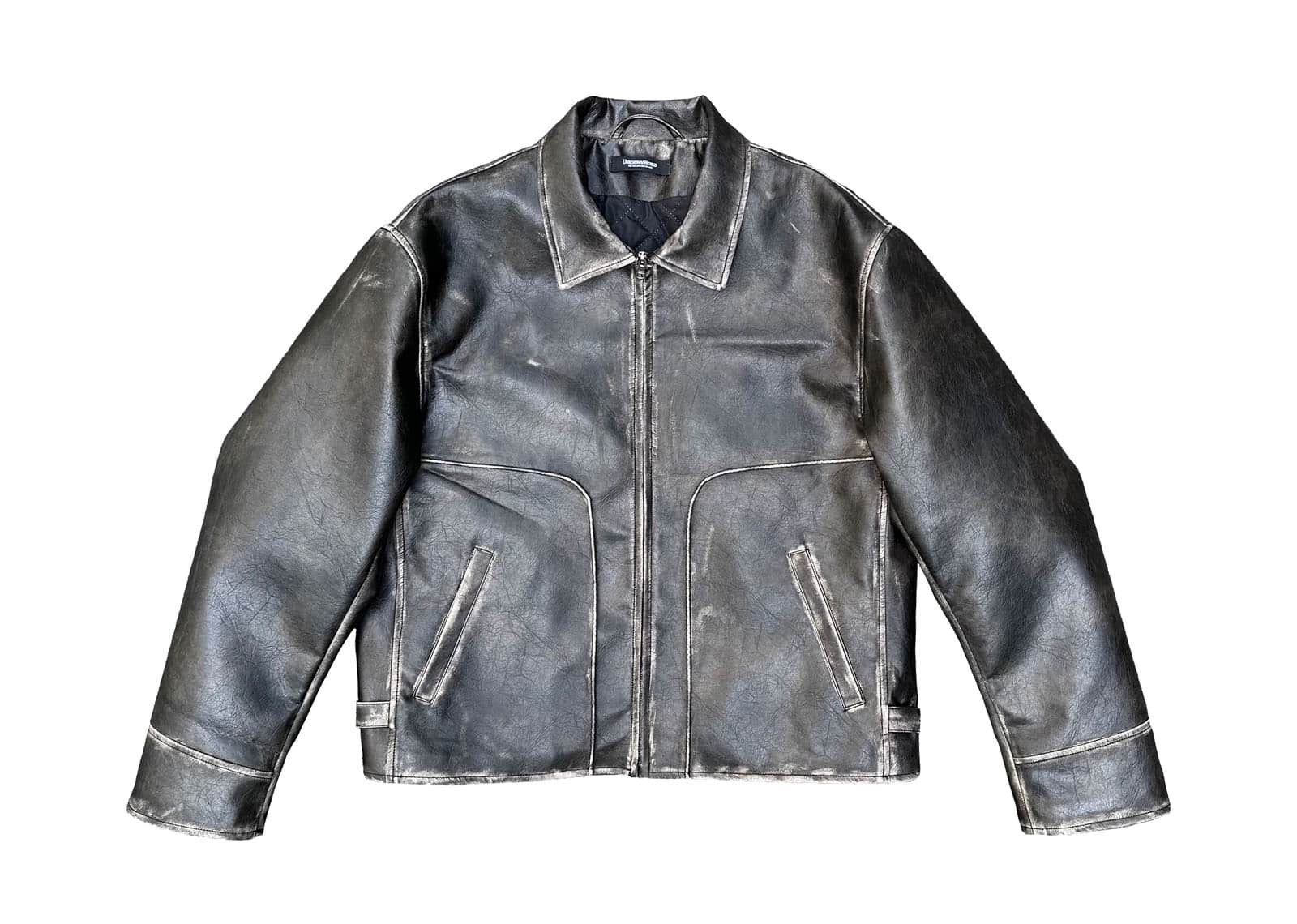 UNKNOWNWORLD Distressed Leather Jacket Brown Black UN224-103104
